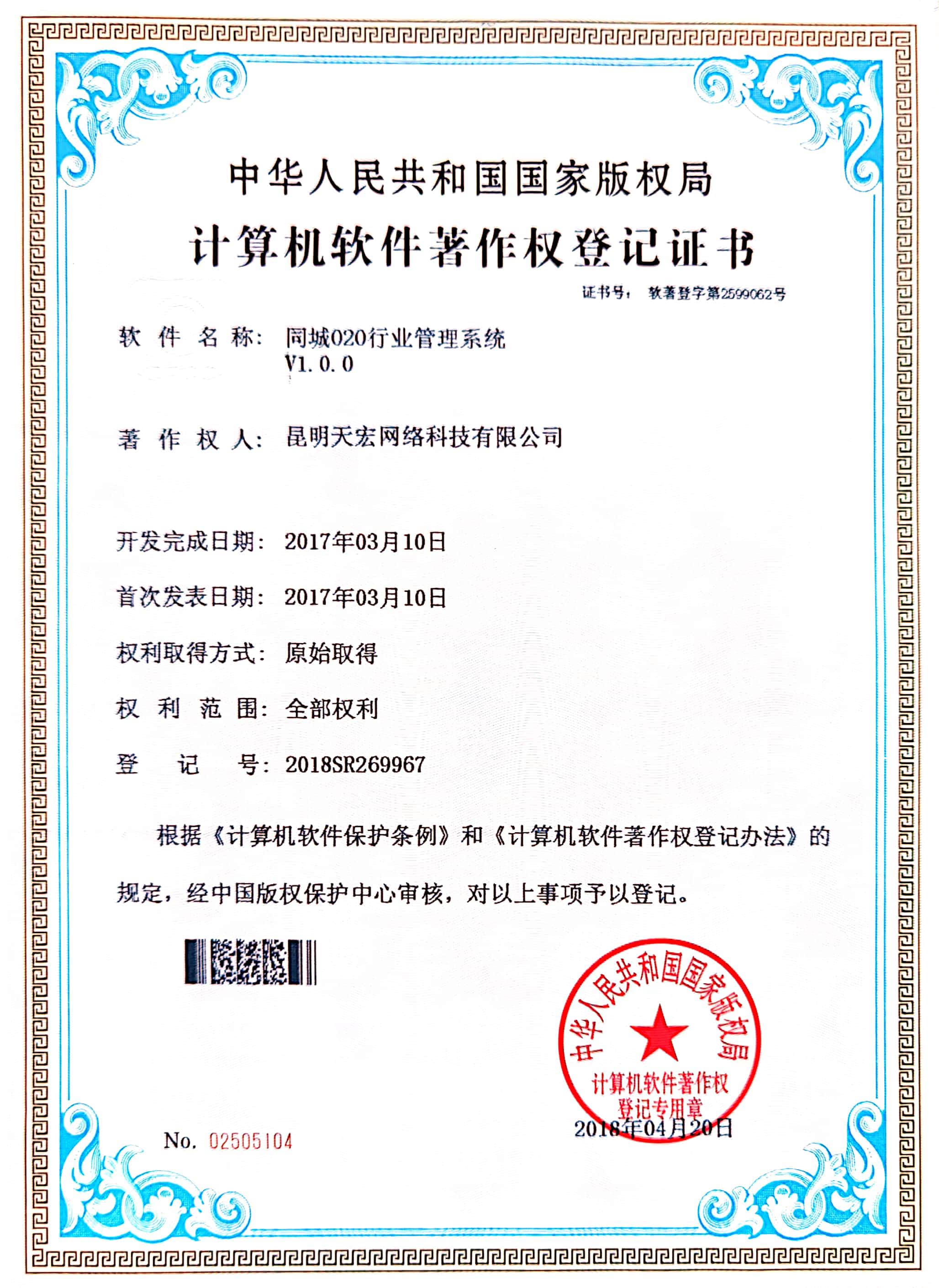 天宏網(wǎng)絡(luò)通過(guò)不斷的研發(fā)創(chuàng)新,現(xiàn)擁有50多項(xiàng)計(jì)算機(jī)軟著證書(shū),包括多商家點(diǎn)餐系統(tǒng)、門(mén)店收銀管理系統(tǒng)、通用OA協(xié)同辦公管理系統(tǒng)、智慧商圈運(yùn)營(yíng)管理平臺(tái)、天宏健康智慧+系統(tǒng)、同城O2O管理系統(tǒng)等。